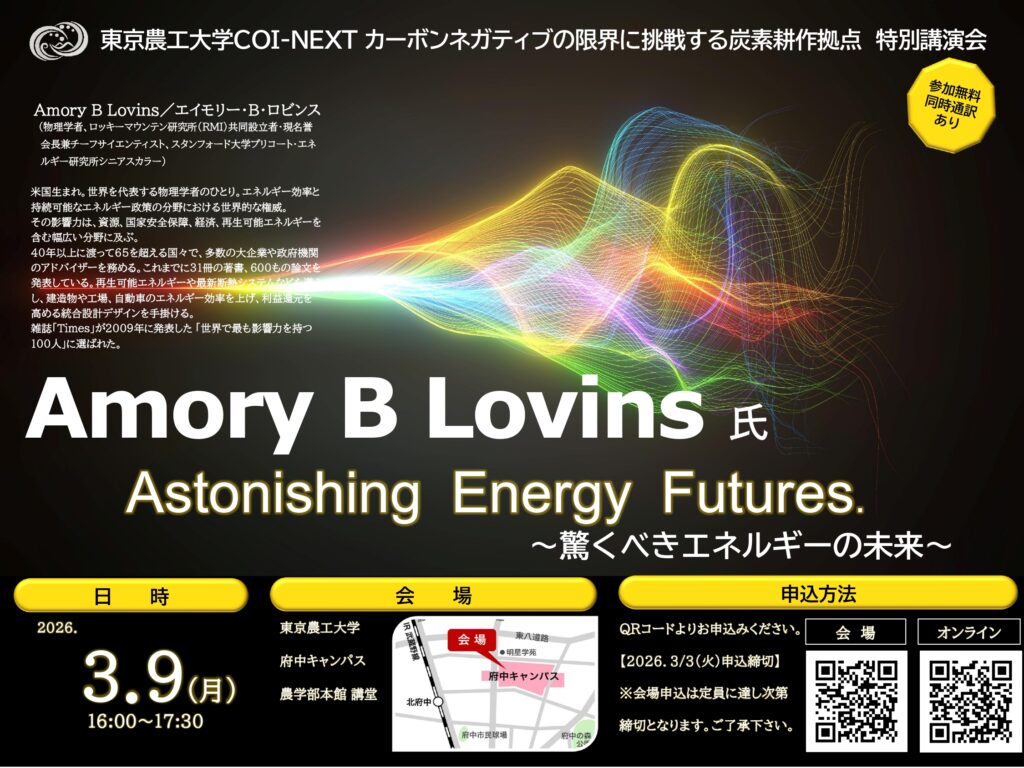 かつてタイム誌によって「世界で最も影響力のある100人」に選ばれ、ブループラネット賞をはじめ数々の国際的な賞に輝く物理学者、エイモリー・ロビンス(Amory B. Lovins)氏を東京農工大学にお招きし、特別講演会を開催します。